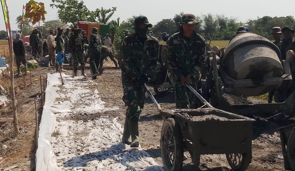 ”Tiap hari harus mengatur strategi agar proses pembetonan jalan yang menghubungan Dukuh Krajan ke Dukuh Prigi, Desa Kalikondang efektif. Mengingat kendala utama di pekerjaan itu adalah terik matahari, hingga akhirnya disepakati waktu awal bekerja lebih pagi,” jelas Peltu Satir.