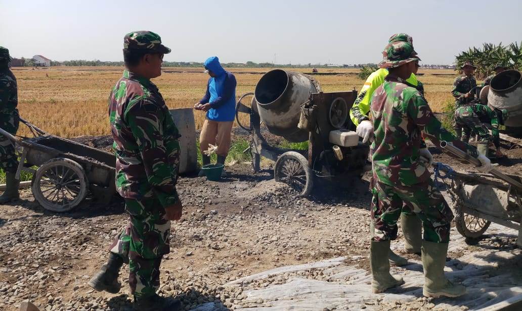 Pasiter Kodim 0716/Demak, Kapten Inf. Mulyadi yang setia harinya turun ke lokasi, terus menekankan perlunya pengorganisasian tim agar hasil pengecoran jalan bisa maksimal
