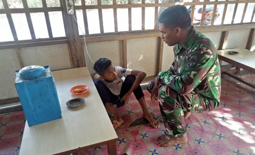 Seperti yang dilakukan oleh Sertu Supriyono, anggota Satgas dari Yonif 410/Alugoro, ketika akan berangkat kerja di lokasi TMMD, di pertengahan jalan, memergoki seorang pelajar SMP yang tengah bermain HP di sebuah warung, di jam sekolah.