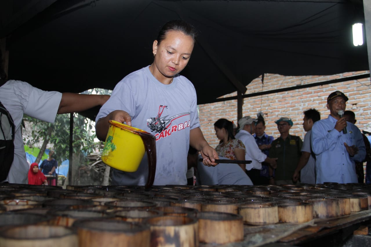 “Proses pembuatan dari air nira ke gula merah sawit selama 5 jam perebusannya dengan komposisi 1 kuali besar air nira sebanyak 50 liter akan menghasilkan antara 15 kg ke 20 kg gula sawit tergantung kualitas pohon sawit yang di tumbang dan akan memerlukan 3 m2 ke 4 m2 kayu bakar/rambung,” pungkas Budi.