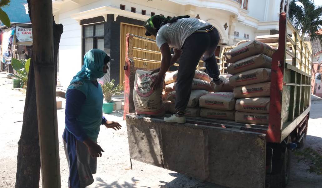 KORDANEWS – Untuk mendukung sejumlah pekerjaan jalan TMMD di desa Kalikondang, Kecamatan Demak Kota (desa sasaran TMMD Reguler ke-105 Kodim 0716/Demak), ratusan zak semen terus digelontor.
