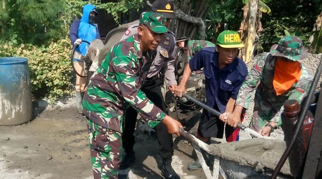 KORDANEWS-Serunya saat Danramil 01/Demak Kota, kapten Kav. Karmadi dan Kapolsek Demak Kota, Iptu Sugeng, turun ke lapangan ikut kerja di pengecoran jalan yang menghubungkan Dukuh Krajan ke Dukuh Prigi, Desa Kalikondang, yang merupakan salah satu sasaran fisik TMMD Reguler ke-105 Kodim Demak.