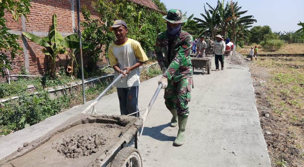 Sejak hari pertama pelaksanaan TMMD, dorong songkro untuk melangsir material maupun adukan merupakan “makanan”” sehari-hari bagi anggota Satgas TMMD Kalikondang dan warga desa sasaran.