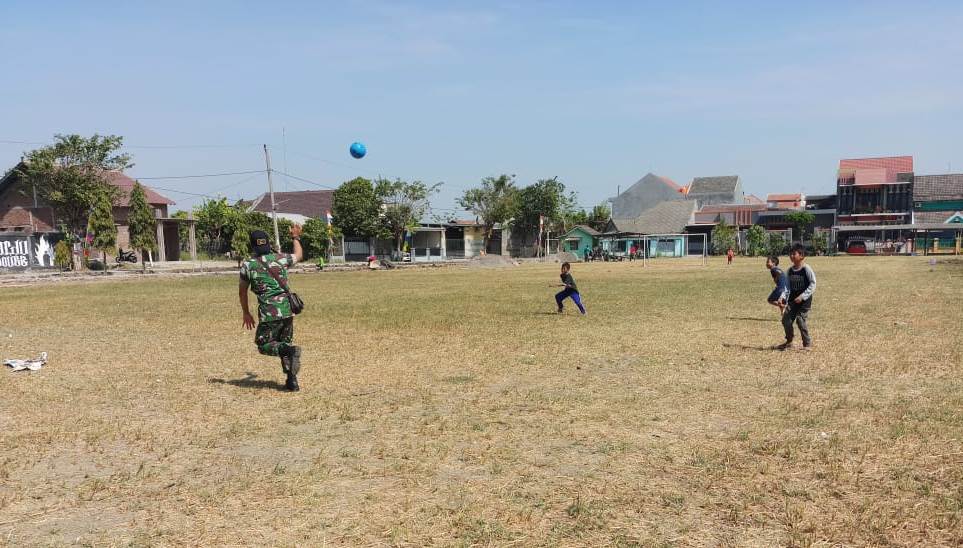 Banyak cara yang dilakukan oleh Para satgas TMMD untuk menjalin keakraban dengan anak-anak di desa sasaran. Salah satunya dengan mengajak main bola di lapangan sepak bola yang ada di Desa Kalikondang.