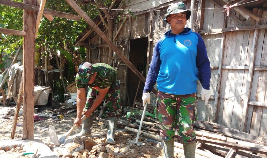 Seperti yang dilakukan oleh Koptu Parmin, salah seorang anggota Satgas TMMD yang ditugaskan di beberapa perehabpan RTLH milik warga desa sasaran. Menyusul terbatasnya alat, seperti saat akan menghancurkan batu padas untuk pengurugan lantai rumah, dia memanfaatkan cangkul untuk mengatasi penghancuran batu cadas tersebut.