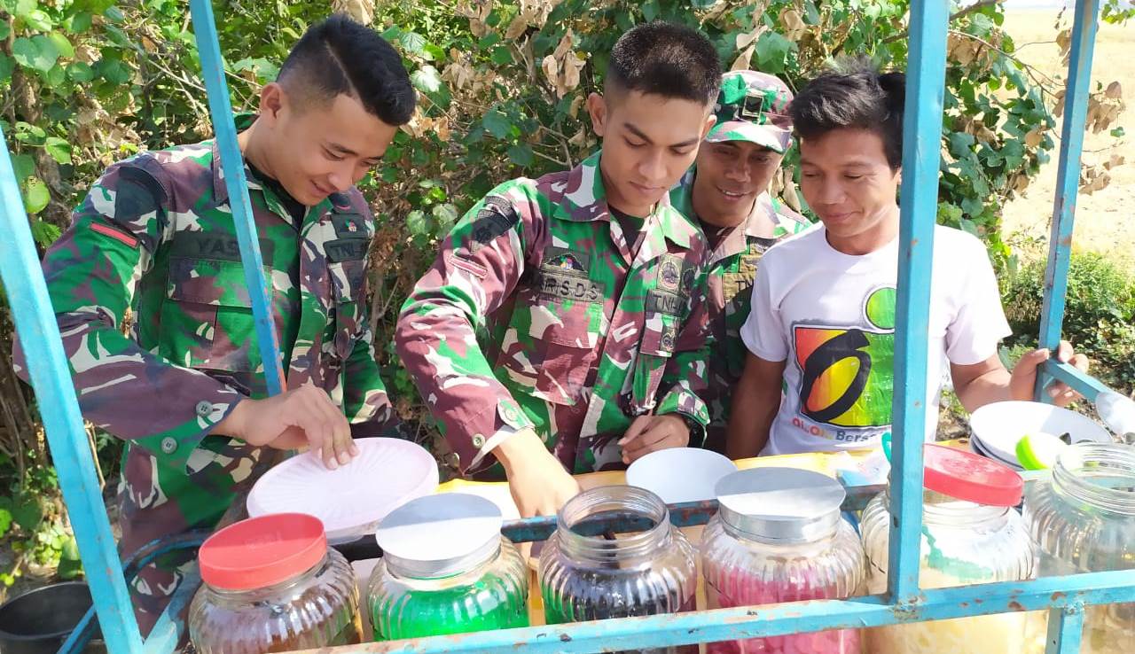 ”Kalau boleh usul, mbok TMMD di Kalikondang tidak segera selesai. Jujur, alhamdulillah dengan adanya TMMD dari Kodim Demak membawa berkah tersendiri bagi saya. Es Dawet selalu laris manis dan habis setiap harinya. Banyak Pak Tentara yang jajan ke tempat saya,” ujar Mas Dian.