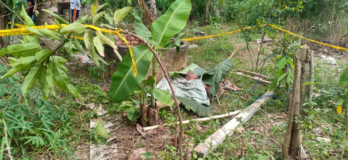 “Benar telah ditemukan mayat berjenis laki-laki di dalam sumur dengan kondisi sudah ditutupi selimut serta leher diikat selang air dan tubuh ditindih oleh batu bata” Kata Kapolsek Talang Kelapa Kompol Irwanto saat ditemui di lokasi kejadian.