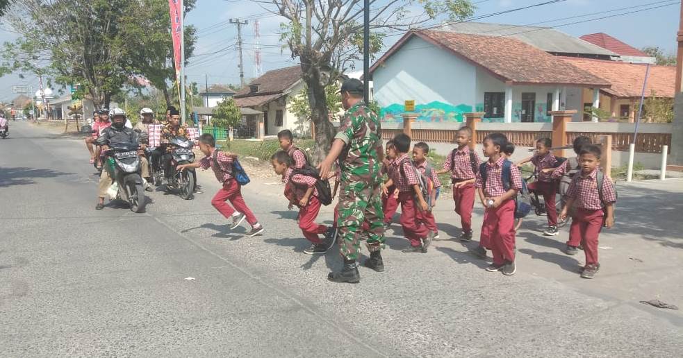 Seperti yang dilakukan Kopda Hery Susanto, yang telah membantu anak-anak SD Negeri 1 Kalikondang yang sedang pulang dari sekolah untuk menyeberang jalan raya. ”Semua saya lakukan spointan, begitu agak siang memang jalan sangat ramai, sehingga anak-anak merasa takut dan kesulitan untuk menyeberang jalan, untuk itu saya harus turun tangan untuk membantu,” ujar Kopda Hery Susanto.