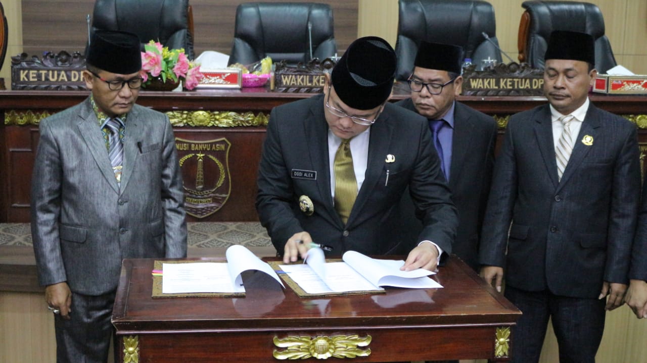 Kesepakatan tersebut diwujudkan dengan penandatanganan persetujuan bersama tentang Rancangan KUPA-PPAS Perubahan APBD tahun 2019 oleh Bupati Muba H Dodi Reza Alex dan Ketua DPRD Muba Abusari Burhan serta para Wakil Ketua DPRD Muba, Sugondo, Edy Haryanto, dan Jon Kennedy di Ruang Rapat Paripurna DPRD Muba, Senin (5/8/2019).