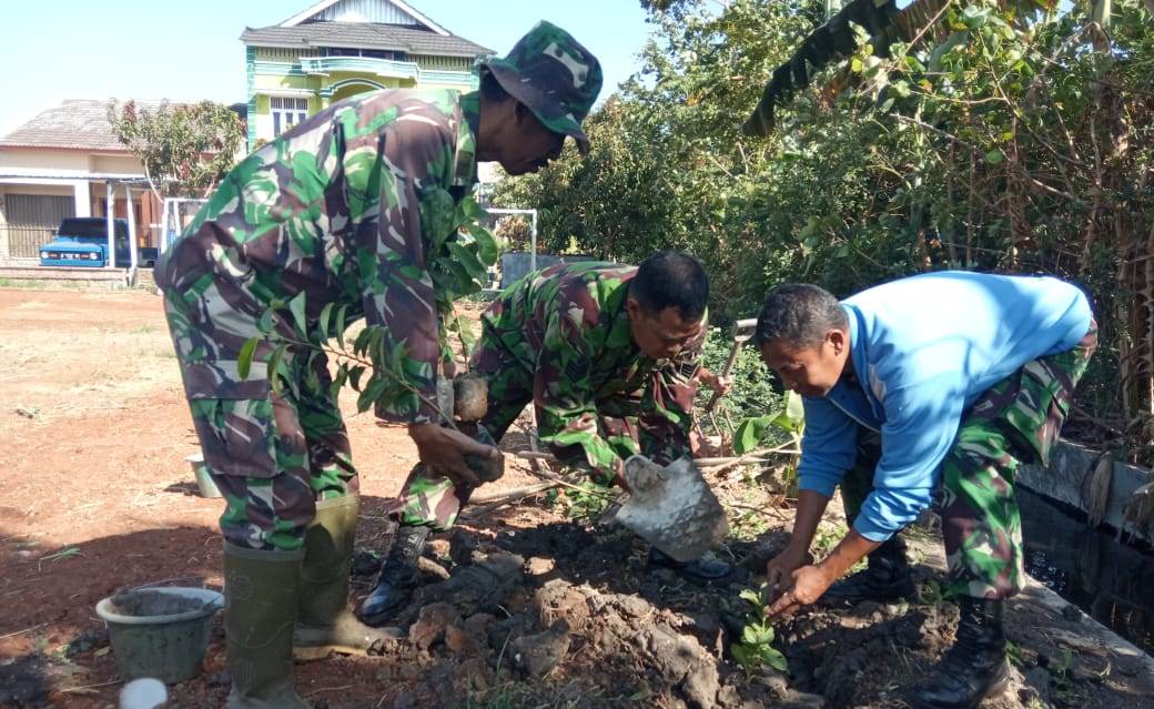 Mereka menanam sejumlah pohon buah-buahan di sepanjang lapangan sepak bola Desa Kalikondang. Aksi penghijauan tersebut dipimpin langsung oleh Batuud Koramil 01/Demak Pelda Sugiono.