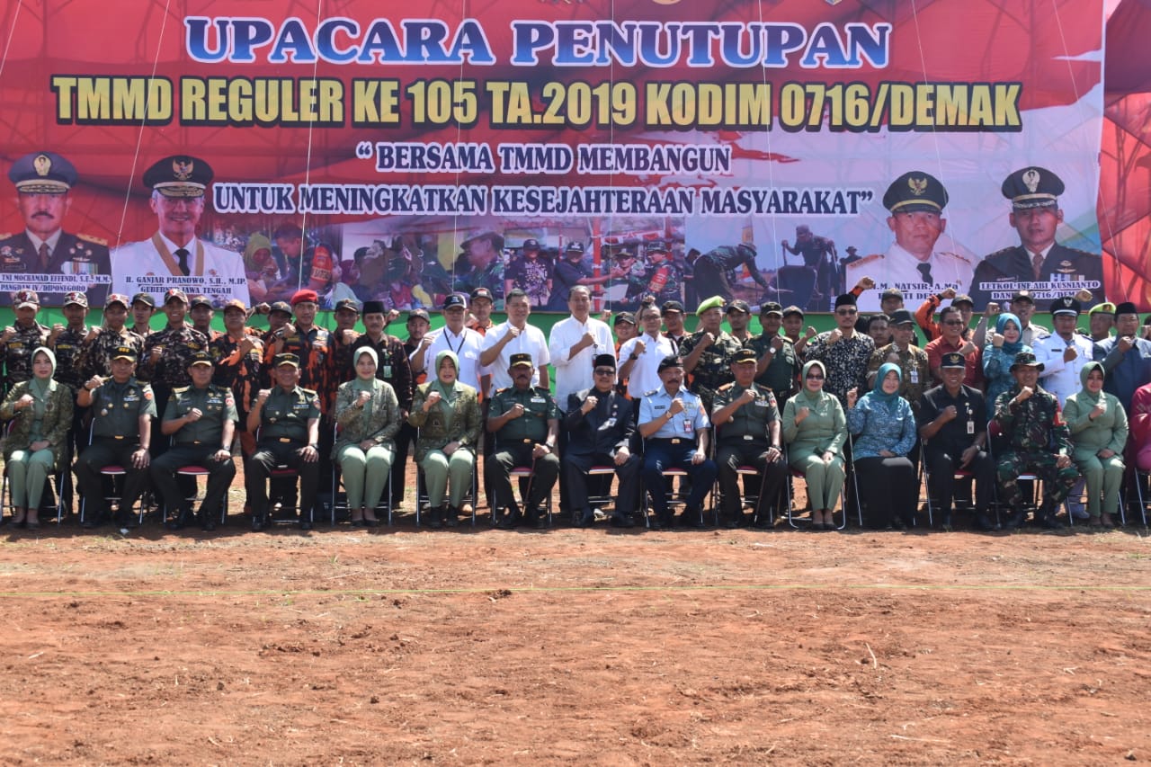 KORDANEWS – Untuk menciptakan kenangan di upacara penutupan TMMD Reguler ke-105 Kodim 0716/Demak, seluruh unsur Forkompimda termasuk Dansatgas TMMD, Letkol Inf Abi Kusnianto melaksanakan foto bersama dengan pangdam IV/Diponegoro, Mayjen TNI Muhamad Effendi.
