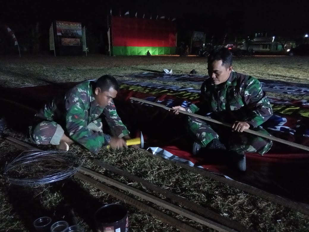KORDANEWS  – Menjelang kegiatan upacara penutupan TMMD Reg ke 105 Kodim 0716/Demak yang rencananya akan dilaksanakan pada hari Kamis tanggal 08 Agustus 2019, anggota satgas TMMD Kodim Demak menyiapkan segala kebutuhan untuk pelaksanaan penutupan upacara tersebut di lapangan Desa Kalikondang Kecamatan Demak Kabupaten Demak hingga larut malam.