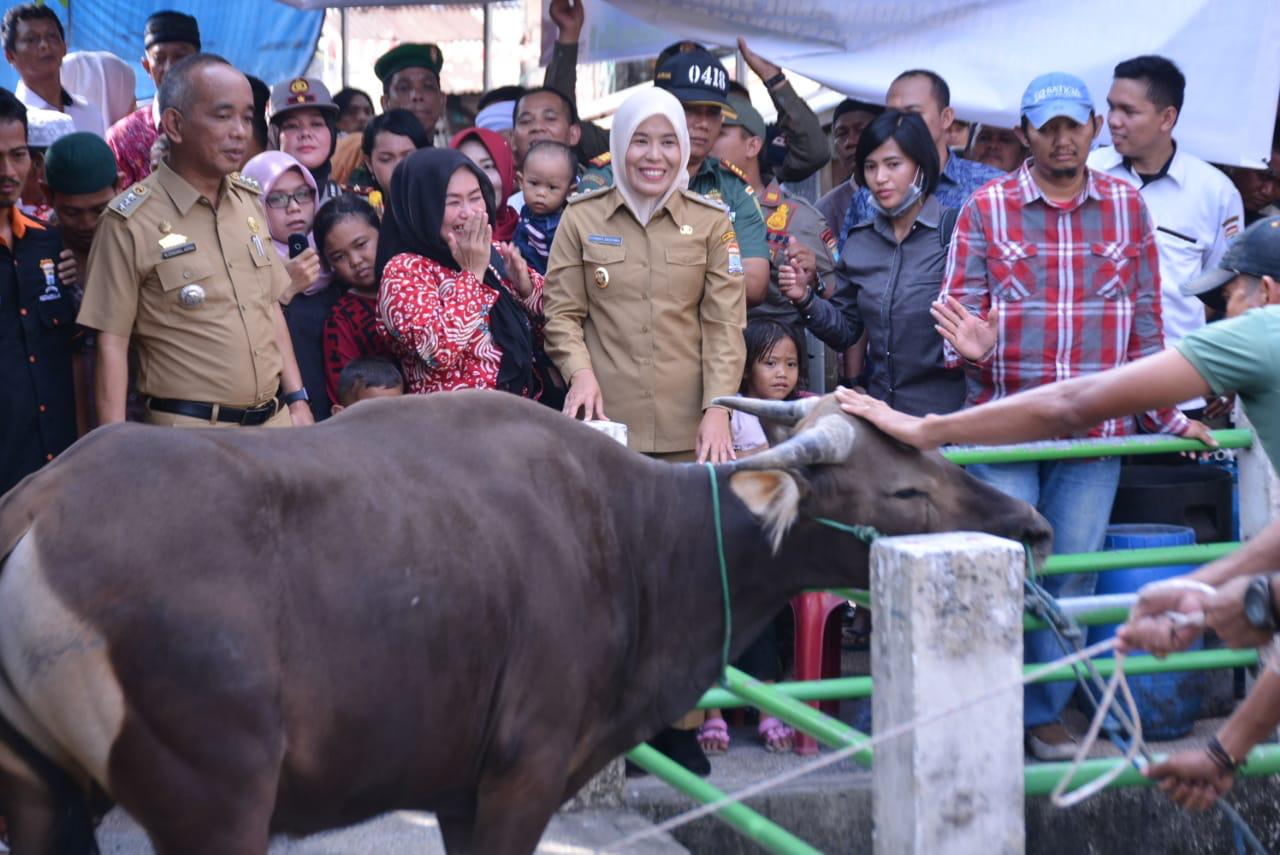 KORDANEWS – Wakil Walikota Palembang Fitrianti Agustinda berikan hewan kurban yakni Sapi di Kelurahan 11 Ulu. Pemberian hewan kurban juga bersamaan dengan pelaksanaan Program Baznas Paket Tebar Gizi, Selasa (13/8), di Kantor Lurah 11 Ulu.