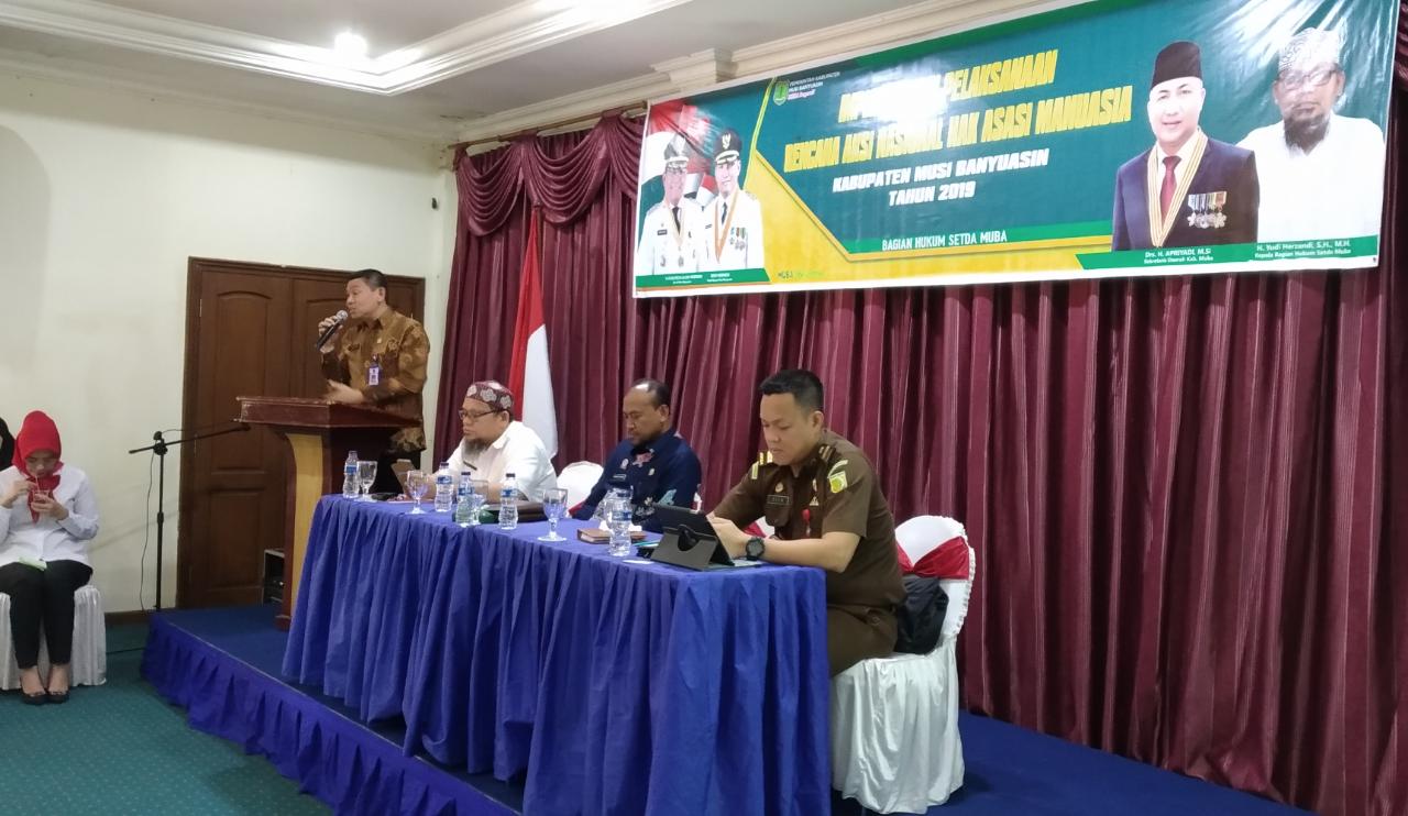 KORDANEWS – Pemerintah Kabupaten Musi Banyuasin menggelar sosialisasi implementasi Rencana Aksi Nasional Hak Asasi Manusia (HAM), di Hotel Ranggonang Sekayu, Kamis (15/8).