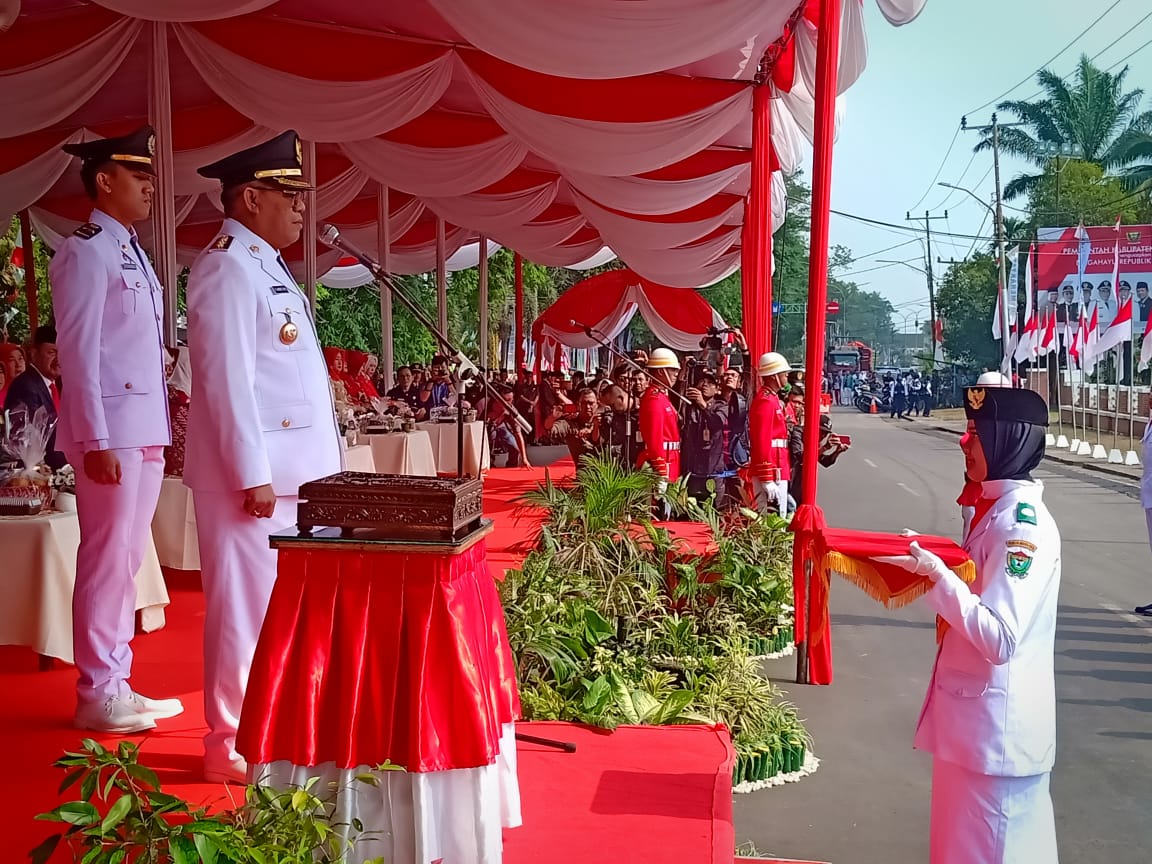 Bertindak sebagai inspektur upacara dan pembacaan teks proklamasi Bupati Muara Enim Ir H Ahmad Yani MM, pembacaan naskah pembukaan UUD 1945 yakni Ketua DPRD Muara Enim Aries HB dan dihadiri pula Wakil Bupati Muara Enim H Juarsah SH dan unsur Forkompimda Muara Enim, PNS, BUMN, BUMD, dan swasta serta undangan.