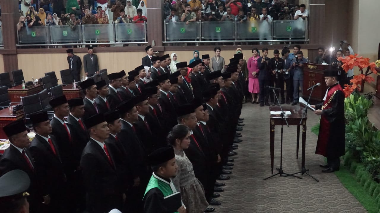 KORDANEWS – Sebanyak 45 anggota DPRD Musi Banyuasin (Muba) periode 2019-2024 resmi dilantik di Gedung Paripurna DPRD Kabupaten Muba, Rabu (11/9/2019). Proses pelantikan dilakukan dengan pengucapan sumpah janji.