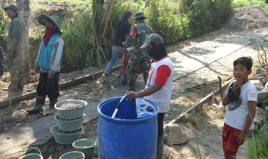 KORDANEWS-Semata-mata ingin dekat dengan TNI, Adi Saptio (10), siswa kelas 4 SDN 3 Sawit, nekat ikut ayahnya Benad (45), warga Dukuh Kembangrowo RT 19/ RW 03, Desa Sangup, membantu bekerja di pengecoran jalan yang menjadi program TMMD Reguler ke-106 Kodim 0724/Boyolali.
