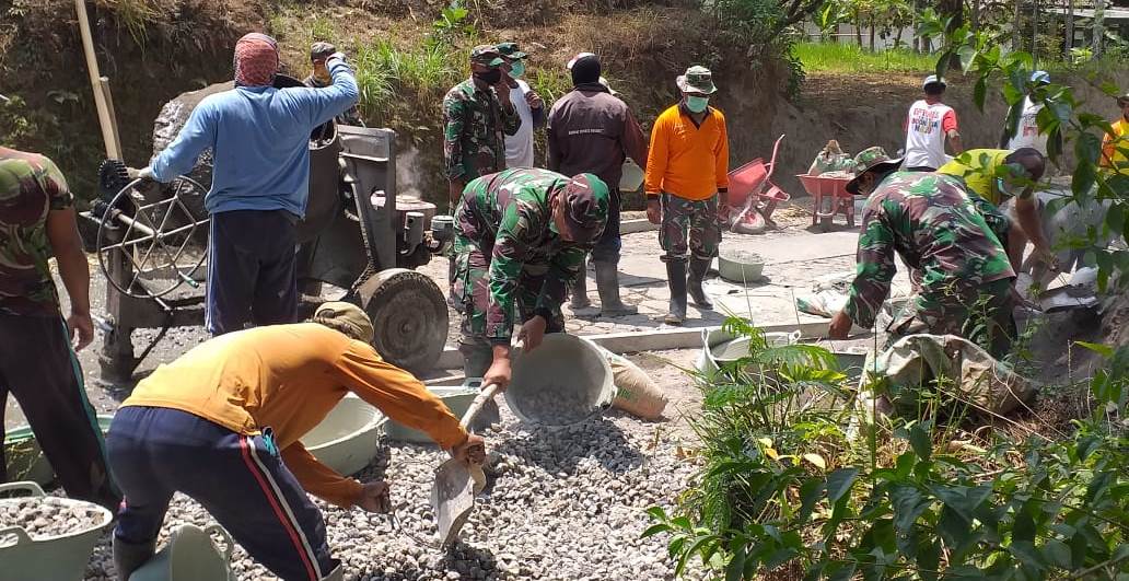 KORDANEWS-Dukungan material yang memadai di Pra TMMD Reguler ke-106 Kodim 0724/Boyolali, prestasi pengecoran jalan yang merupakan sasaran fisik utama TMMD maksimal. Diharapkan target 50 persen penyelesaian fisik jalan bersamaan dengan upacara pembukaan akan tercapai.