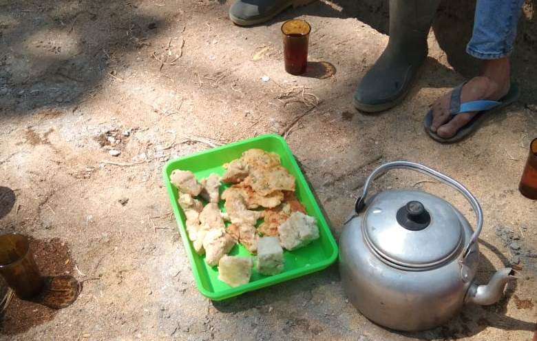 Dikemukakan Babinsa Sangup, Serka Rosyd, ada camilan khas Desa Sangup, yakni ketela goreng dibumbui gula Jawa. ”Jajanan khas itu disediakan warga secara bergantian sejak hari pertama Pra TMMD. Cukup lumayan sebagai “teman” bagi warga dan TNI saat istirahat kerja,”paparnya.