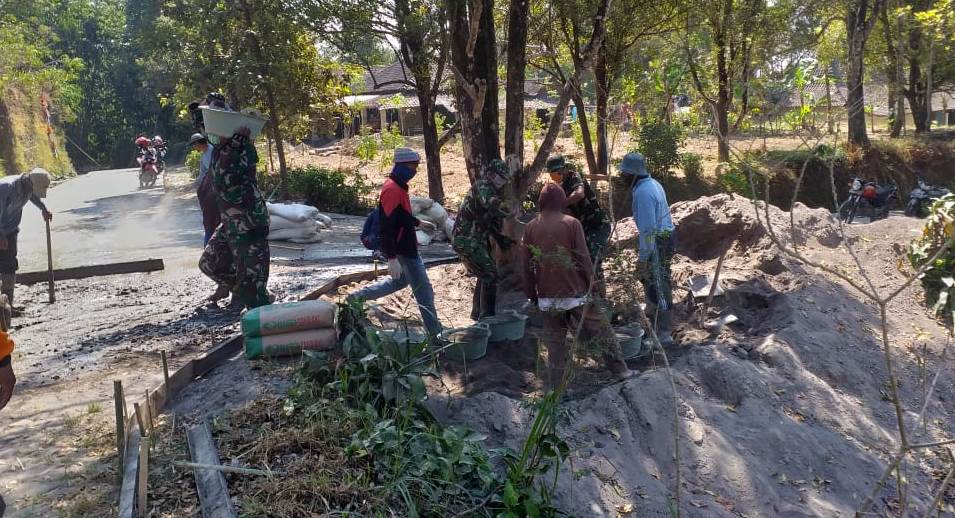 KORDANEWS-Sejumlah anggota Koramil 02/Musuk Kodim 0724/Boyolali, diantaranya Sertu Maryoto terus pacu semangat Desa Sangup, Kecamatan Tamansari untuk terus giat di pembangunan jalan yang merupakan sasaran utama TMMD Reguler ke-106 Kodim 0724/Boyolali.