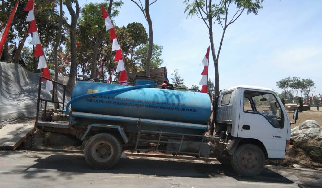 yakni mengirimkan armada tangki air untuk ikut menyirami areal bazar maupun tempat upacara pembukaan TMMD di Desa Sangup.