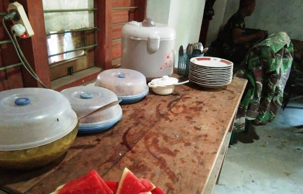 ”Lokasi pengecoran jalan sudah jauh dari pemukiman penduduk, kalau makan harus pulang atau di rumah warga akan memakan waktu sehingga saat kembali ke tempat kerja pasti terlambat,” ungkap Babinsa Desa Sangup, Serka Rosyd.