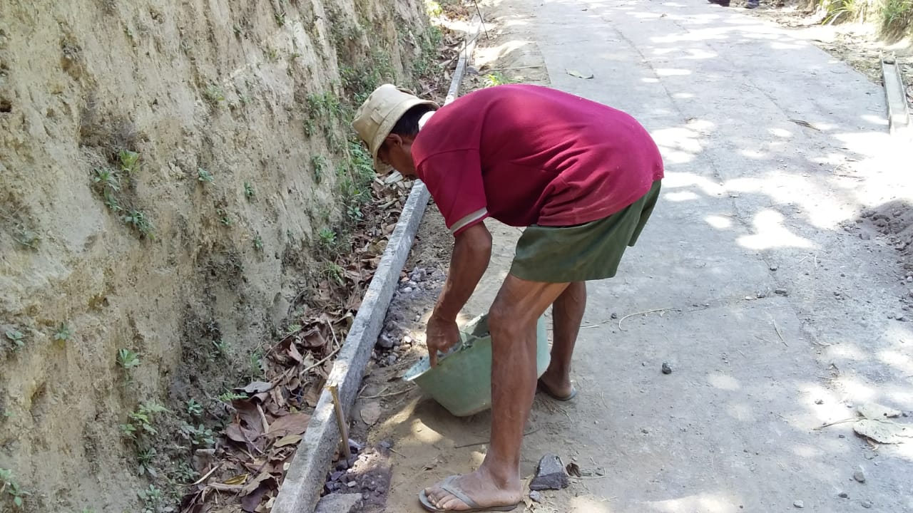 Di setiap harinya, Mbah Samijo selalu hadir di lokasi pengecoran jalan. Dengan membawa ember kecil lantas mengambil bebatuan dan dituangkan ke pinggir kanan kiri jalan. Tujuannya batu-batu itu nantinya bisa menjadi penahan adonan supaya tidak meluber.