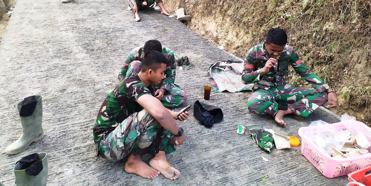 ”Disaat istirahat siang, kami dengan sesama anggota Satgas untuk mencari solusi bagaimana caranya mempercepat sisa pengecoran jalan yang sisa pekerjaannya masih lumayan banyak,” ungkap Kopda Agung, salah satu anggota Satgas TMMD Kodim Boyolali.