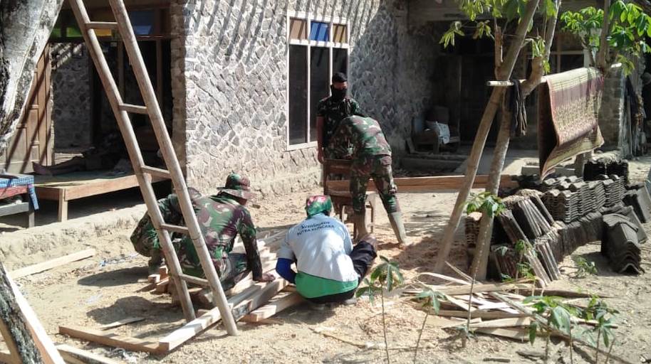 KORDANEWS-Lantaran semua kusen rumah milik Miharjo di Dukuh Ringin, Desa Sangup, Kecamatan Tamansari, Kabupaten Boyolali, Jawa Tengah, dalam kondisi kropos, TNI Satgas TMMD Reguler ke-106 Kodim 0724/Boyolali, saat merehab rumah tersebut mengganti seluruh kusen.