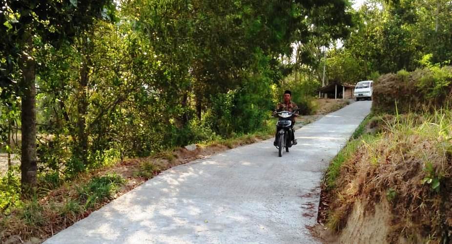 KORDANEWS – Menyusul jalan yang baru dicor belum bisa dilewati kendaraan roda empat, sejumlah motor warga desa sasaran TMMD Reguler ke-106 Kodim 0724/Boyolali, Desa Sangup, Kecamatan Tamansari, Kabupaten Boyolali, Jawa Tengah, “bermain” untuk langsir materiall semen.