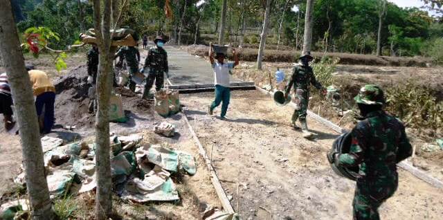 KORDANEWS – Melihat masih ada sisa pengecoran jalan di program TMMD Reguler ke-106 Kodim 0724/Boyolali di desanya, Parwono, seorang Ketua RT di Dukuh Tlogojati, Desa Sangup, Kecamatan Tamansari, Kabupaten Boyolali, Jawa Tengah,terjun ke lokasi untuk menyemangati warganya.