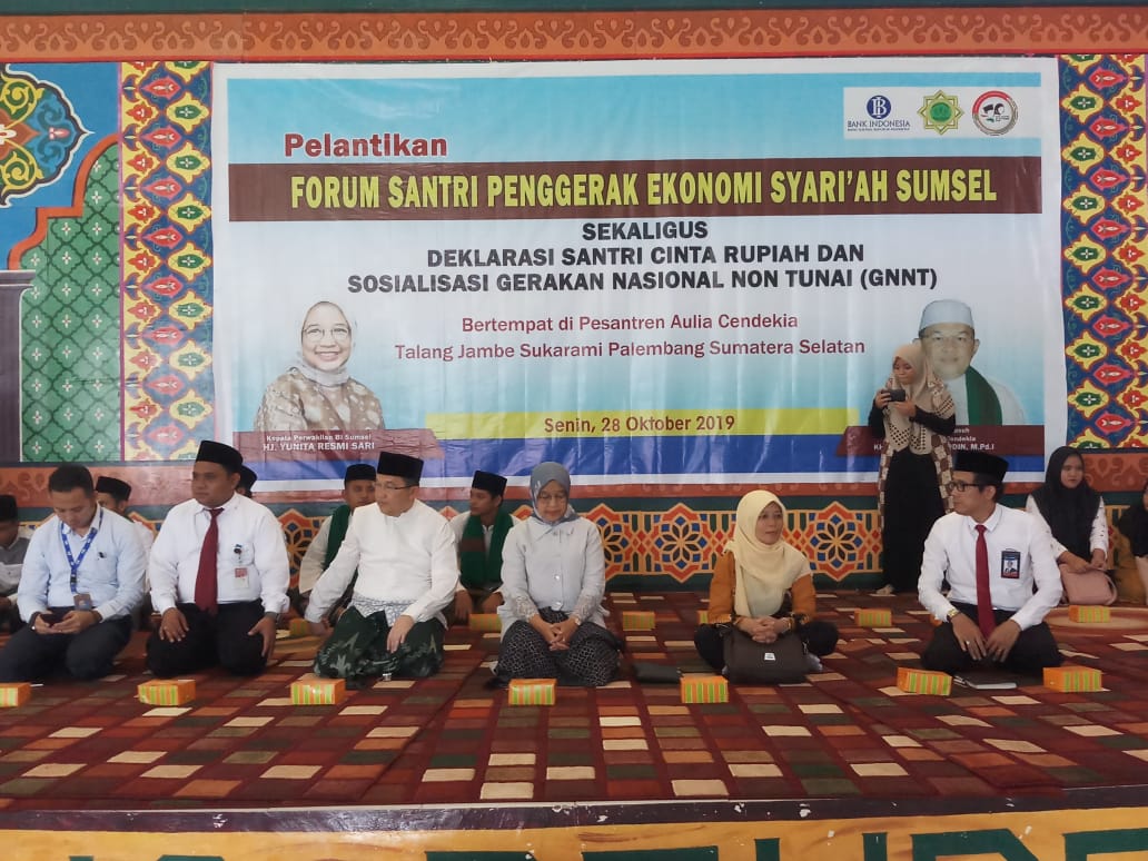Hal ini disampaikan Yunita Resmi Sari selaku Kepala Perwakilan Bank Indonesia Sumsel mengatakan “Pada saat sekarang ini banyak negara tetanggga yang mayoritas penduduknya non muslim terus gencar mengklaim penerapan ekonomi syariah dan produk turunannya.” jelasnya saat pelantikan forum santri penggerak ekonomi syariah Sumsel sekaligus deklarasi santi cinta rupiah dan sosialisasi Gerakan Nasional Non Tunai (GNNT), Senin (28/10).