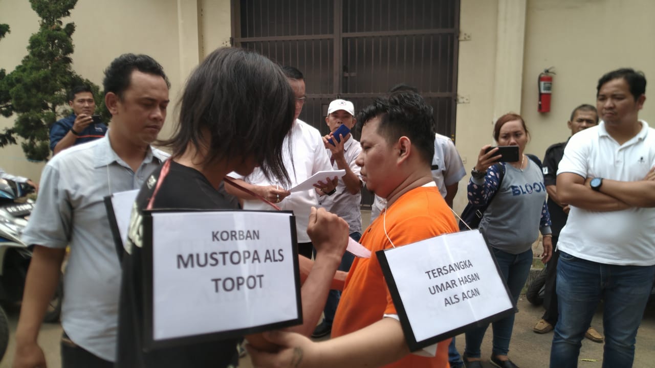 Kedua pelaku yang diketahui kakak beradik ini memerankan langsung adegan demi adegan sedangkan peran korban Mustopa digantikan polisi.