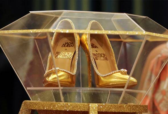 KORDANEWS – Berwarna emas, bertakhtakan berlian, dan memilik hak tinggi membuat sepasang sepatu dari Dubai, Uni Emirat Arab ini tampak berkelas, mahal, dan memesona. Tak tanggung-tanggung, sepatu ini dijual dengan harga US$17 juta atau sekitar Rp253 miliar.