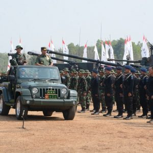 KORDANEWS-Komandan Satuan Tugas (Dansatgas) TNI Manunggal Membangun Desa (TMMD) 106 Kodim 0619/Purwakarta, Letkol Arh Yogi Nugroho melaporkan jenis dan realisasi TMMD di hadapan Inspektur Upacara penutupan Pangdam III/Slw, Letjen TNI Tri Soewandono.
