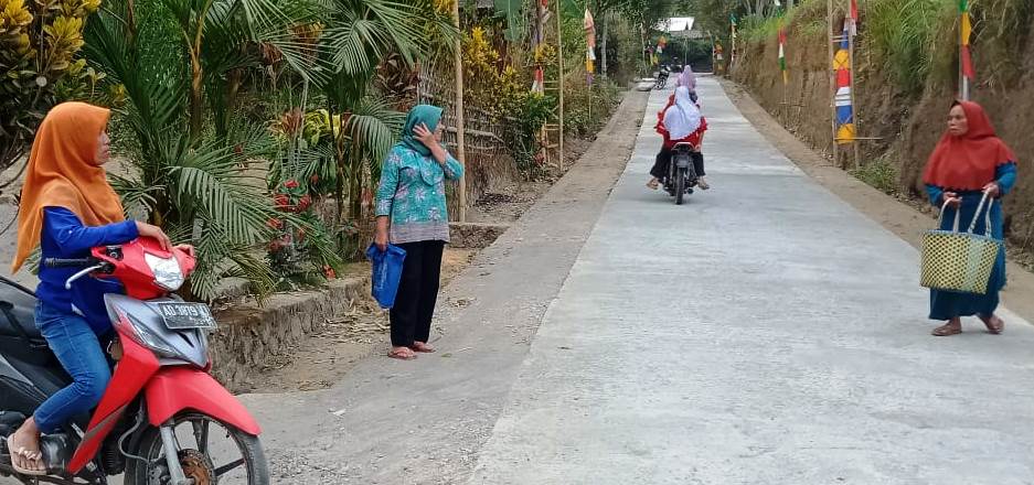 KORDANEWS- Sejumlah ibu-ibu di Desa Sangup, Kecamatan Tamansari, Kabupaten Boyolali, Jawa Tengah, langsung mencoba jalan cor di desanya yang baru saja dibangun TNI Satgas TMMD Reguler ke-106 Kodim 0724/Boyolali. Mereka mengaku cukup senang dengan jalan baru tersebut.