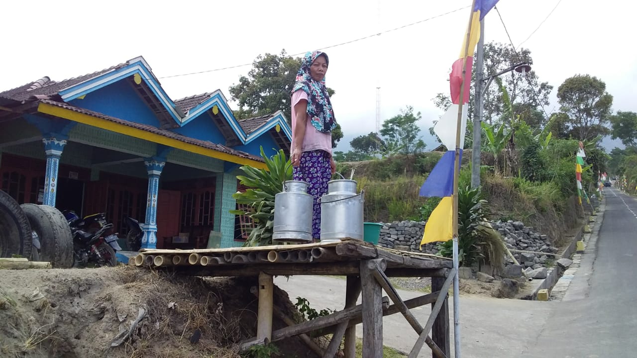 ”Setelah jalan dibangun TNI, saya tidak perlu mengusung susu hasil perahan ternak sapi saya ke jalan raya. Kini tinggal menaruh di depan rumah, nantinya sudah diambil oleh petugas dari KUD,” beber Bu Sumini.