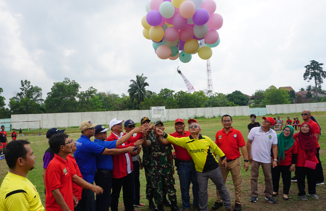 Kompetisi Sepak Bola yang diikuti 32 Tim berasal dari dalam dan luar Kabupaten Muara Enim dibuka oleh Plt Bupati Muara Enim H Juarsah yang diwakili Kadispora Rusdi Khairulah, Sabtu (23/11) ditandai dengan pelepasan balon.