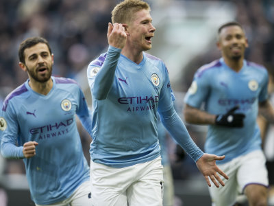 Football - 2019 / 2020 Premier League - Newcastle United vs. Manchester City Kevin De Bruyne of Manchester City celebrates scoring to make it 2-1, at St James Park. COLORSPORT/BRUCE WHITE PUBLICATIONxNOTxINxUK