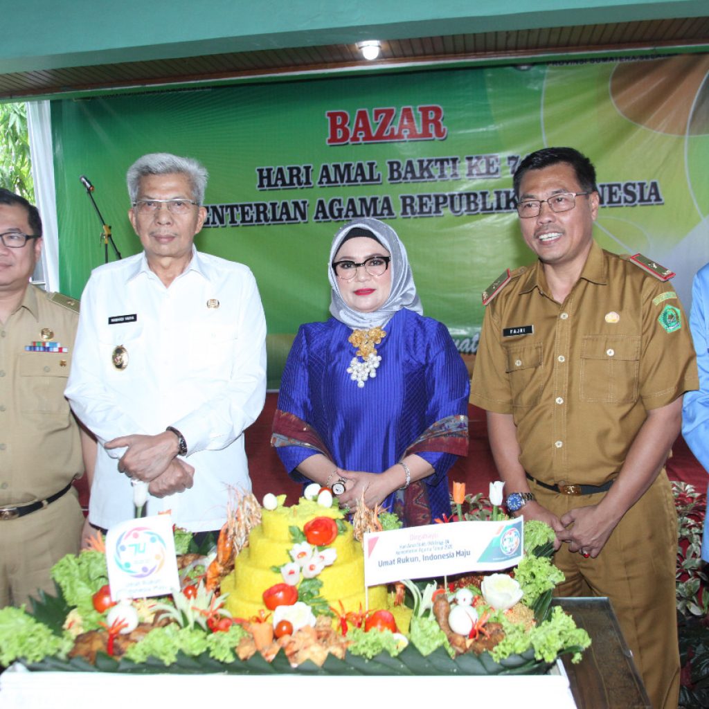 KORDANEWS – Wakil Gubernur Provinsi Sumatera Selatan (Sumsel) Mawardi Yahya didampingi oleh Ketua Tim Penggerak PKK Provinsi Sumsel Febrita Lustia Herman Deru, dan Wakil Ketua Tim Penggerak PKK Fauziah Mawardi Yahya menghadiri pembukaan Bazar Dharma Wanita Kementerian Agama Provinsi Sumsel dalam rangka Hari Amal Bakti ke-74.